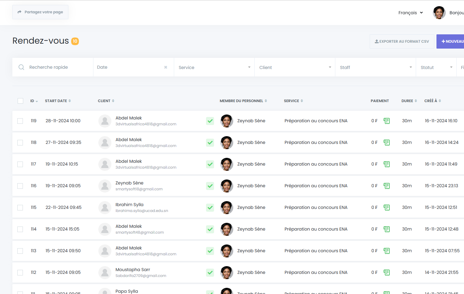 Testez le système de réservation afin d’expérimenter la facilité, la rapidité et l’efficacité avec laquelle il peut transformer votre business.